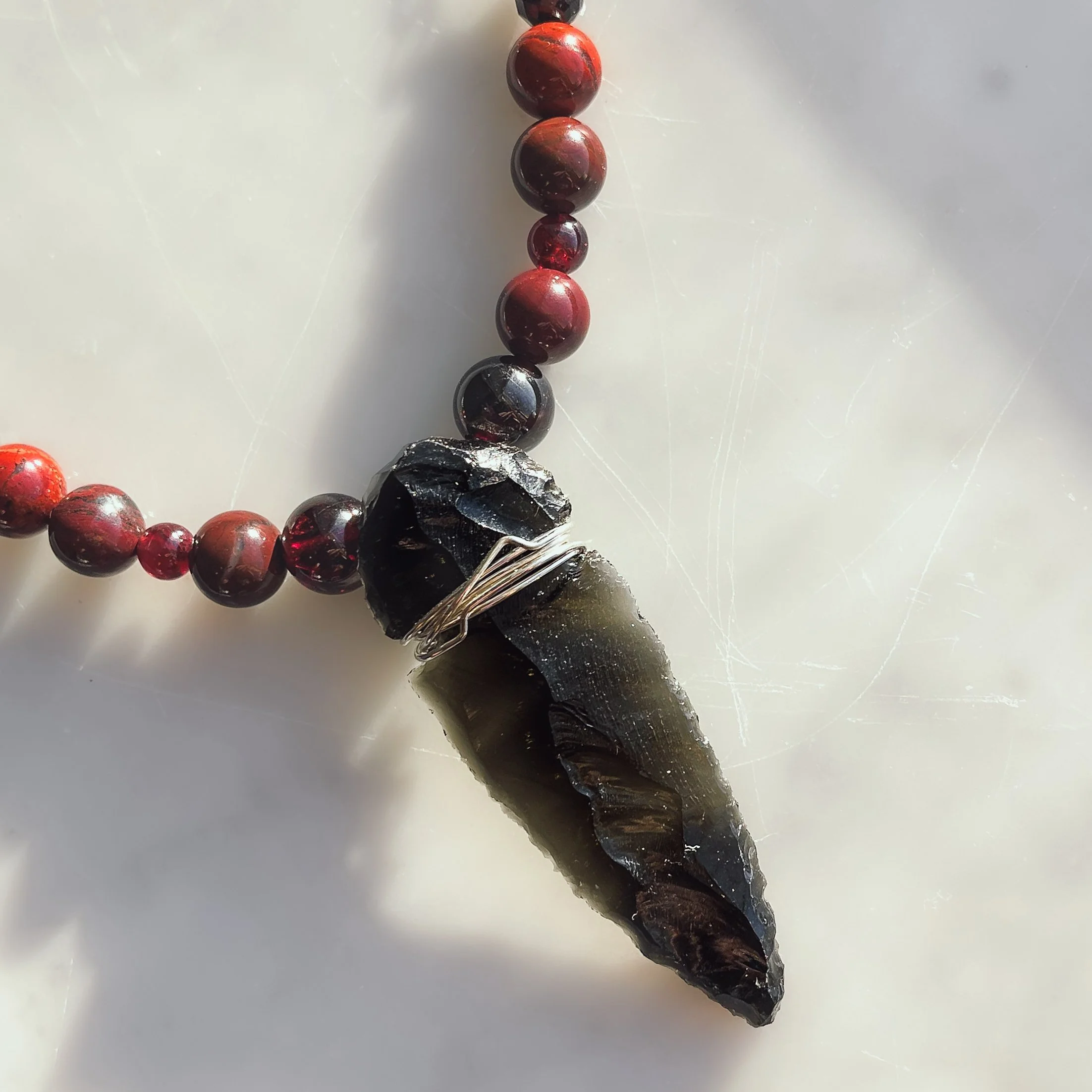 Heart of Compassion Spiral Crystal Necklace | Aventurine, Bloodstone, Rhodonite