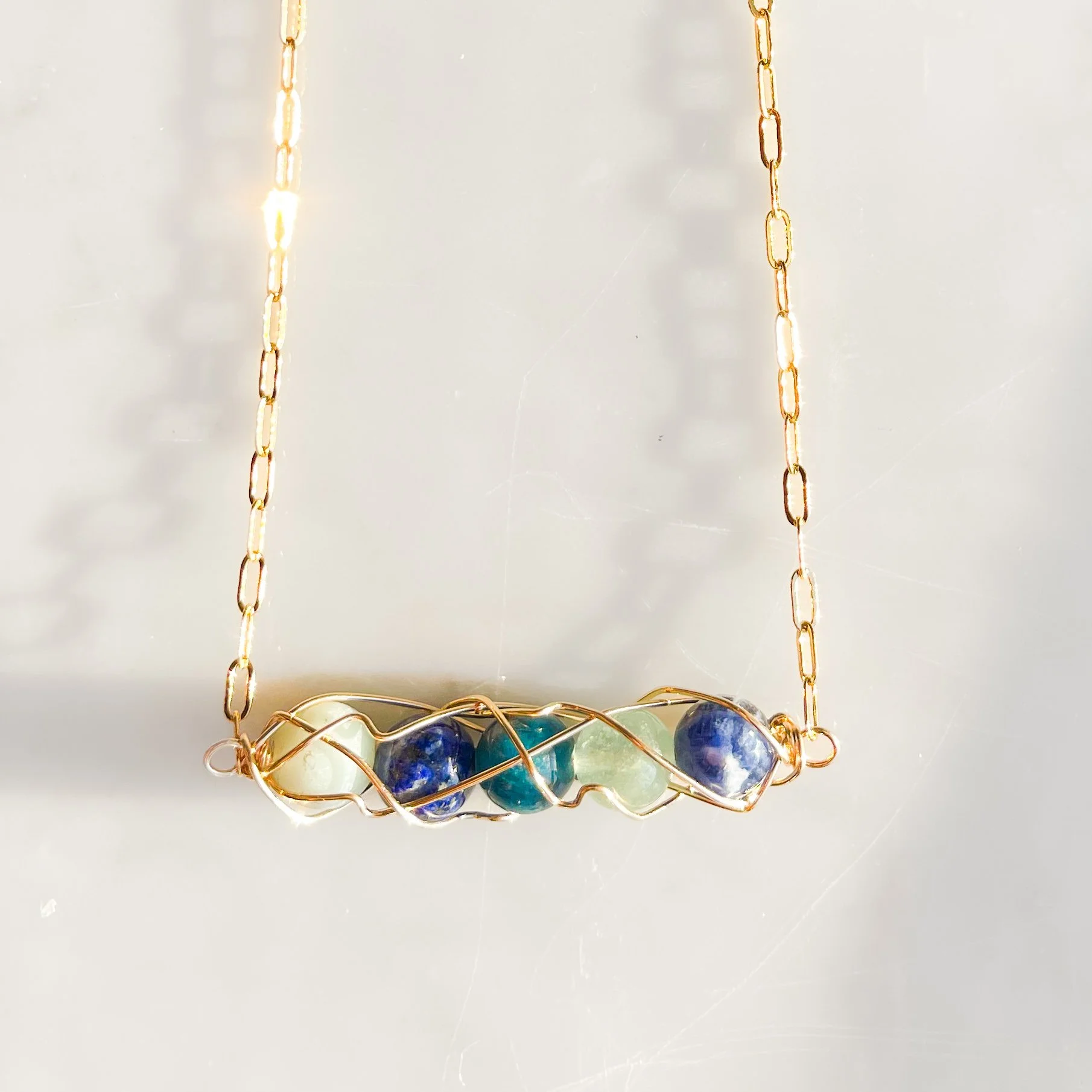 Hyperthyroid Support Necklace | Soothing Throat Chakra Gems