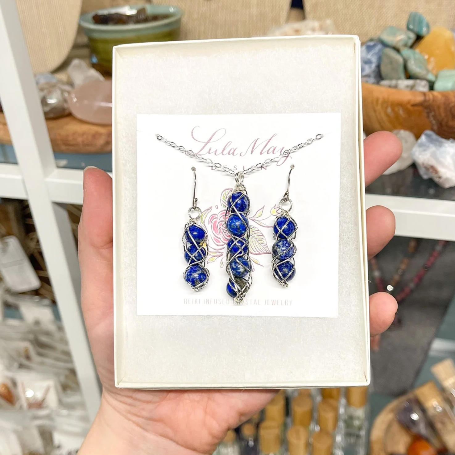 Lula May Design reiki-infused crystal jewelry is handcrafted by Ivy+Light founder Erin Hollon. Since college Erin has looked to natural medicine, alternative healing, and balanced living to improve her quality of life. After facing several debilitating health issues and learning how to heal her body naturally, her true passion for helping others took on a laser beam focus: to help everyone understand how our emotions and spirit are connected to our health, and how crystals and essential oils can help us achieve true health and wellness.